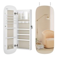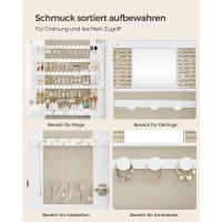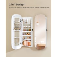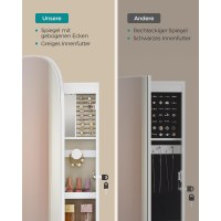 Indvendigt finder du et praktisk spejl, så du kan lægge makeup og style uden at åbne og lukke døren hele tiden. Naturlige LED-lys hjælper med et klart overblik. Skabet byder på righoldig plads til øreringe, halskæder, ringe, armbånd og makeupredskaber, så alt har sin faste plads og er hurtigt at finde.