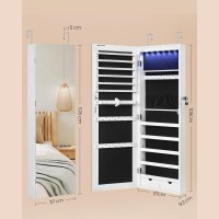Få overblik over hele outfittet med det rammeløse, fuldlængde spejl på 37 × 108 cm i ægte glas. Indvendigt tændes 6 LED-lys automatisk, når døren åbnes, så dine smykker præsenteres klart og indbydende – perfekt til soveværelset eller garderoben.