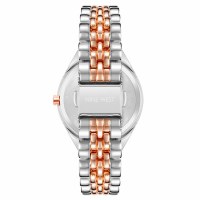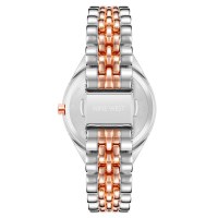 Giv dit look et tidløst løft med Nine West NW-2661SVRT. Det stilrene dameur kombinerer en grå skive med multifarvet urkasse og lænke for et sofistikeret udtryk. Kvartsbevægelsen sikrer pålidelig tidsangivelse, og den integrerede datovisning gør hverdagen nemmere. Uret er splash-resistent, så det kan klare små stænk i farten.
