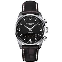 Certina DS Multi-8 kombinerer klassisk design med moderne funktioner. Det sorte ur med analoge visere og diskret digitalt display giver et sofistikeret udtryk til både hverdag og fest. Med safirglas og en sort læderrem får du et ur, der ser godt ud og føles behageligt på håndleddet.
