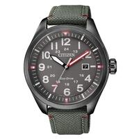 Citizen herreur i et maskulint og tidløst design, perfekt til hverdagsbrug og pænere anledninger. Uret kombinerer en grå urskive med tydelige tal og en grøn tekstilrem med læderdetaljer for et robust, urbant udtryk. Den praktiske datovisning og den letlæselige skive gør det til et sikkert valg i hverdagen. Med Eco-Drive teknologi og 10 atm vandtæthed er det et pålideligt valg til aktive mænd.