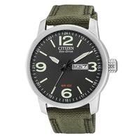 Citizen Eco-Drive BM8470-11E er et klassisk herreur til hverdagsbrug. Uret har en mørk skive med store, letlæselige tal og markeringer samt visning af dag og dato kl. 3. Den grønne tekstilrem giver et afslappet, maskulint udtryk, der passer til både fritid og kontor.