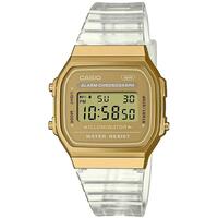 Casio Vintage kombinerer retro charme med moderne funktioner. Med sin gyldne urkasse og en klar, transparent rem får du et iøjnefaldende ur, der passer til både hverdag og fest. Det digitale display giver et hurtigt overblik over tiden, mens den praktiske belysning gør det nemt at aflæse. Et oplagt valg til dig, der vil have et stilfuldt digitalur med klassiske Casio-detaljer.