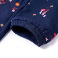 Denne kjole til børn har lange ærmer, en rund halsudskæring og en snøre i taljen. Kjolen har et print, der forestiller svampe, og ribstrikkede kanter ved ærmerne og halsudskæringen. Den er fremstillet af bløde materialer, bomuld og elastan, hvilket giver komfort og åndbarhed.