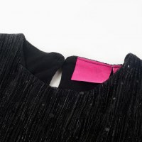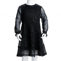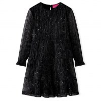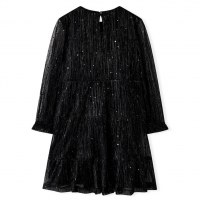 Denne langærmede kjole til børn har en rund halsudskæring og en åbning med knap bagpå. Den sorte kjole har et tyldesign med pailletter. Den er fremstillet af bløde materialer, der inkluderer bomuldsfor og et polyesterydre for komfort og åndbarhed.