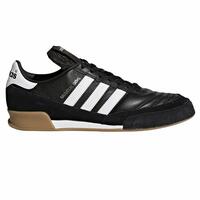 Gå på banen med Adidas Mundial Goal - klassiske indendørs fodboldstøvler til mænd i elegant sort. Modellen er skabt til voksne spillere, der vil træne og spille futsal eller indendørs fodbold med sikkert fodfæste og et tidløst look. De ikoniske tre striber i hvid pryder siden, mens den lave profil giver en tæt kontakt med gulvet.