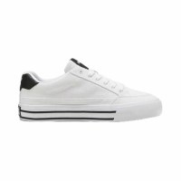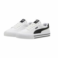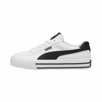 Gå efter et rent, sporty look med Puma Court Classic Vulc. Denne model i str. 37 er designet som træningssko til mænd og passer perfekt til hverdagsmotion og lette træningspas. Den lave profil giver et afslappet udtryk, mens den klassiske, hvide overdel med sort hældetalje og stribedetaljer på sålen gør skoen nem at matche med dit sportstøj.